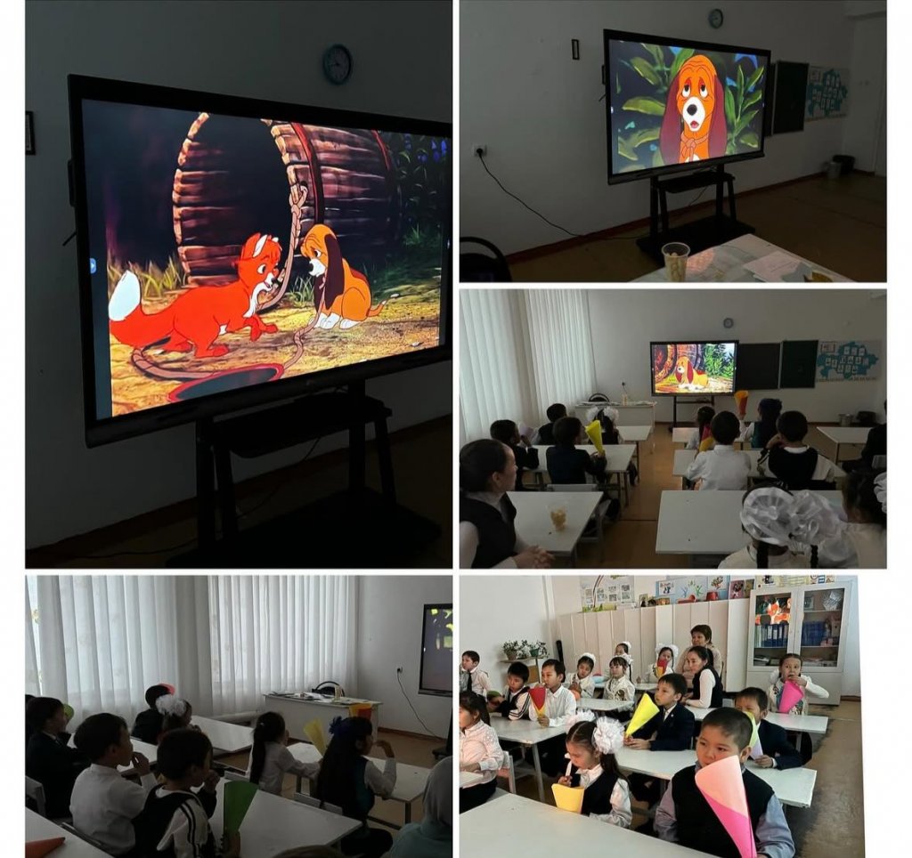 Бастауыш сыныптар онкүндігі аясында оқушыларға тәрбиелік мәні зор «Түлкі мен ит» атты анимациялық фильм көрсетілді.