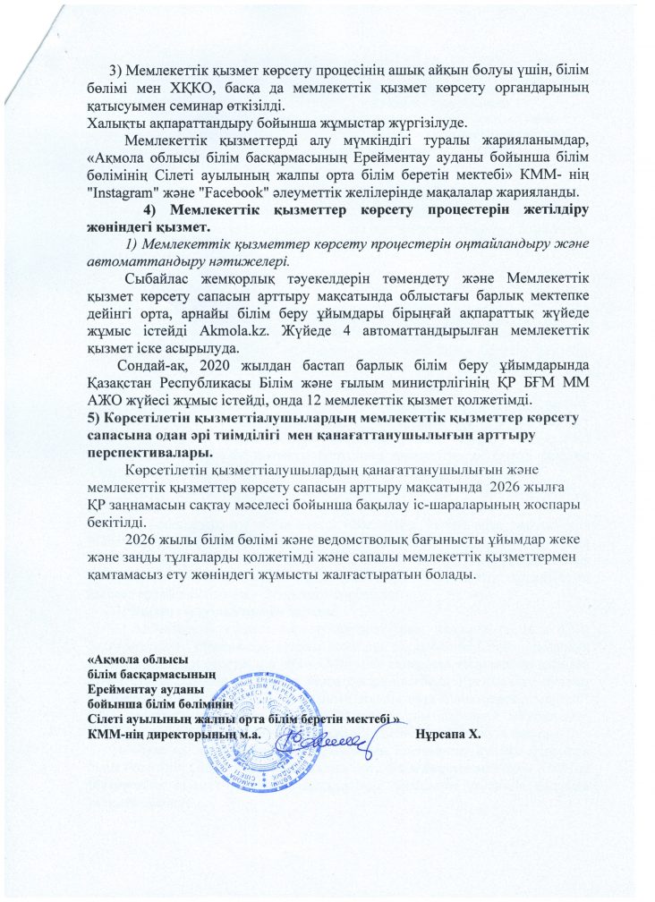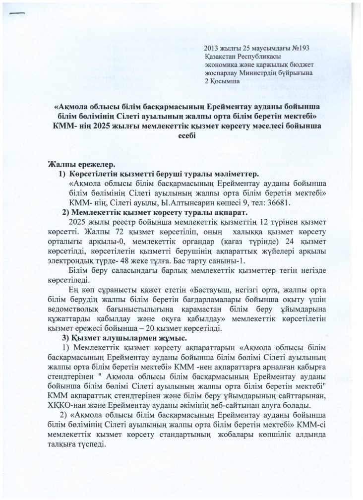 2025 жылғы мемлекеттік қызмет көрсету мәселесі бойынша есебі