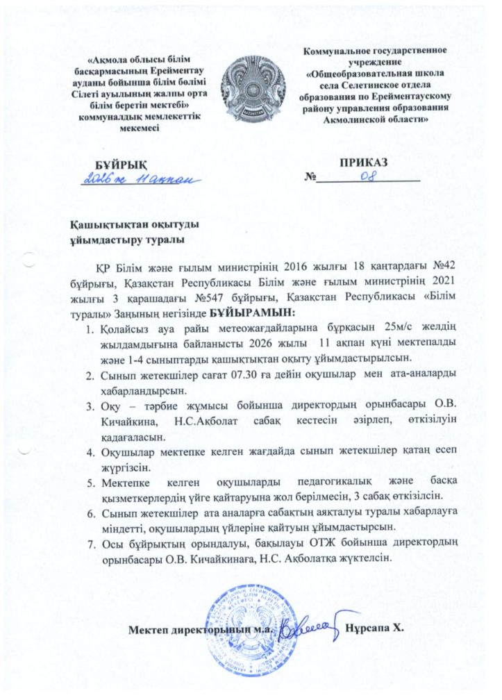 Коммунальное государственное учреждение «Общеобразовательная школа села Селетинское отдела образования по Ерейментаускому району управления образования Акмолинской области"