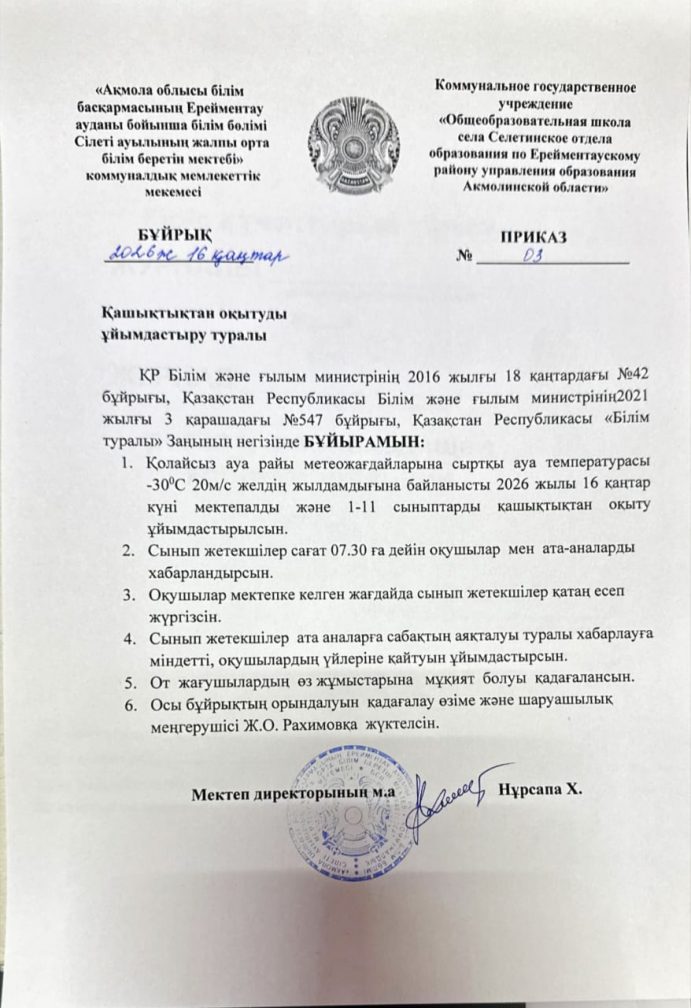 Бұйрық 16.01.2026