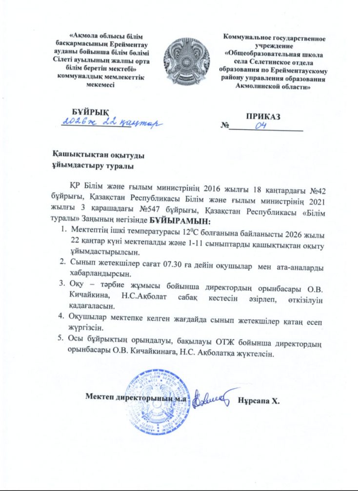 Коммунальное государственное учреждение «Общеобразовательная школа села Селетинское отдела образования по Ерейментаускому району управления образования Акмолинской области"