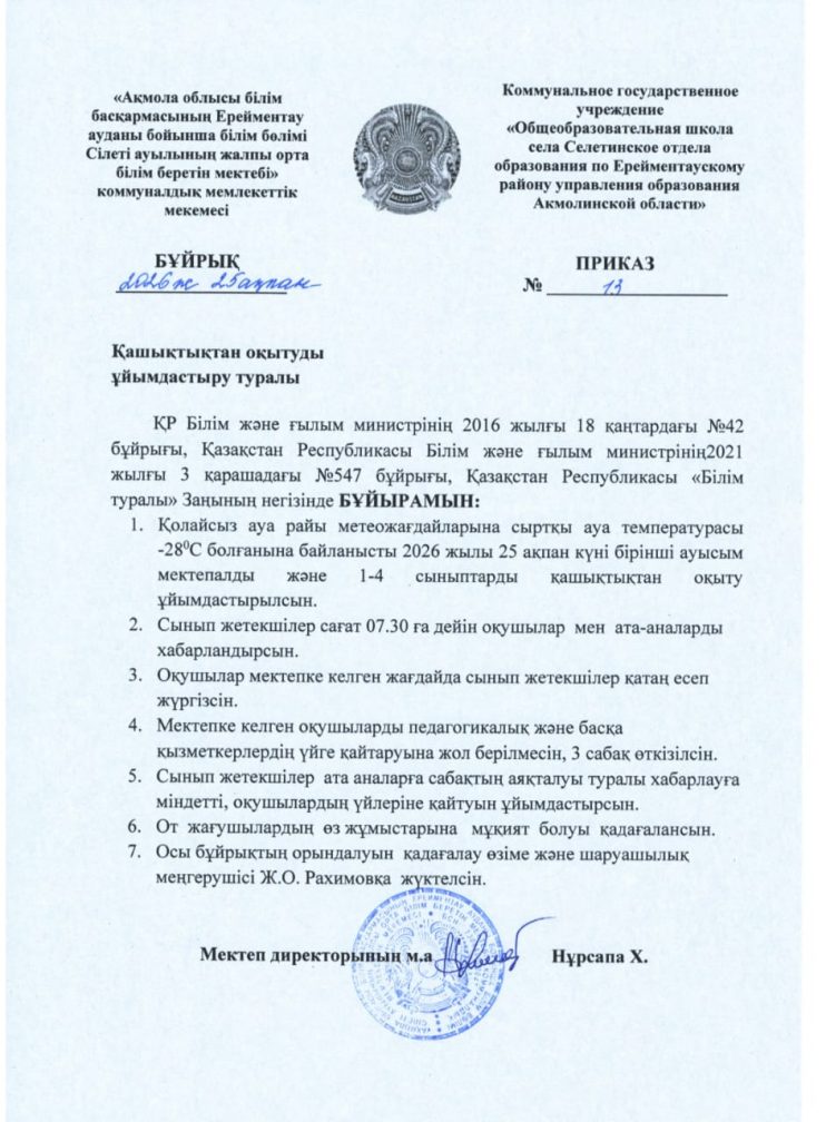 Коммунальное государственное учреждение «Общеобразовательная школа села Селетинское отдела образования по Ерейментаускому району управления образования Акмолинской области"