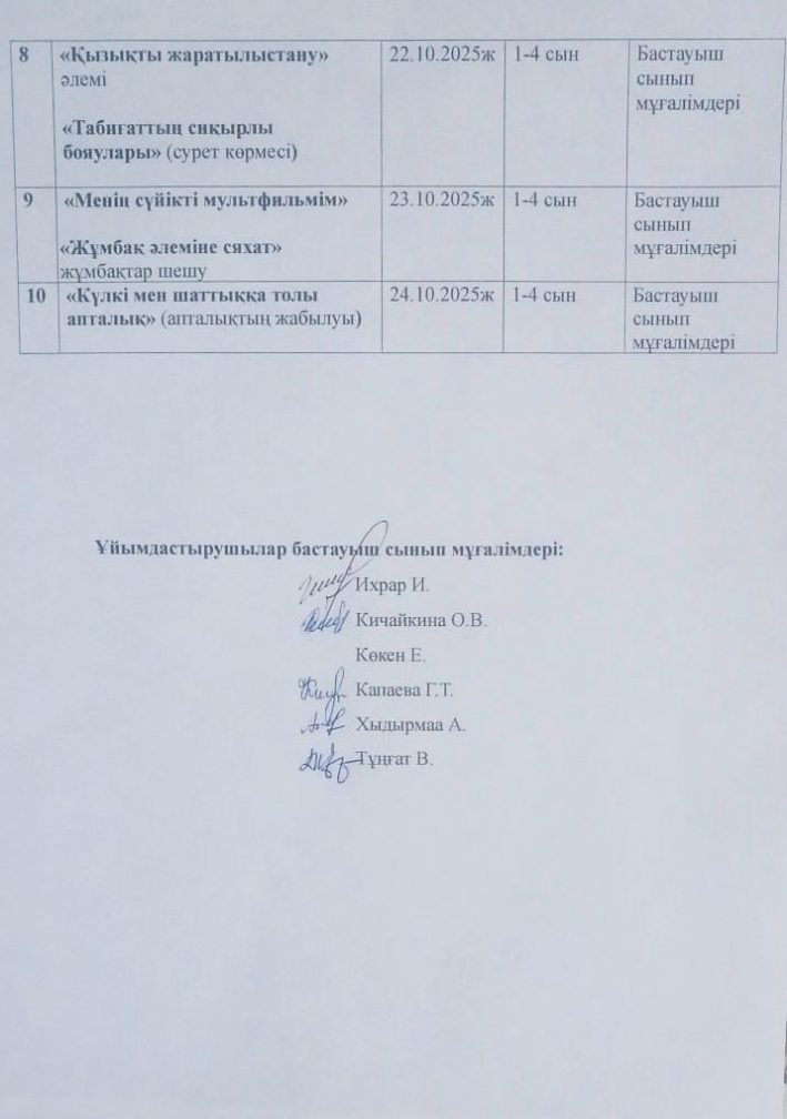 "Сілеті ауылының ЖОББМ" КММ 2025-2026 оқу жылы Бастауыш сыныптар онкүндігіне арналған іс-шаралар жоспары