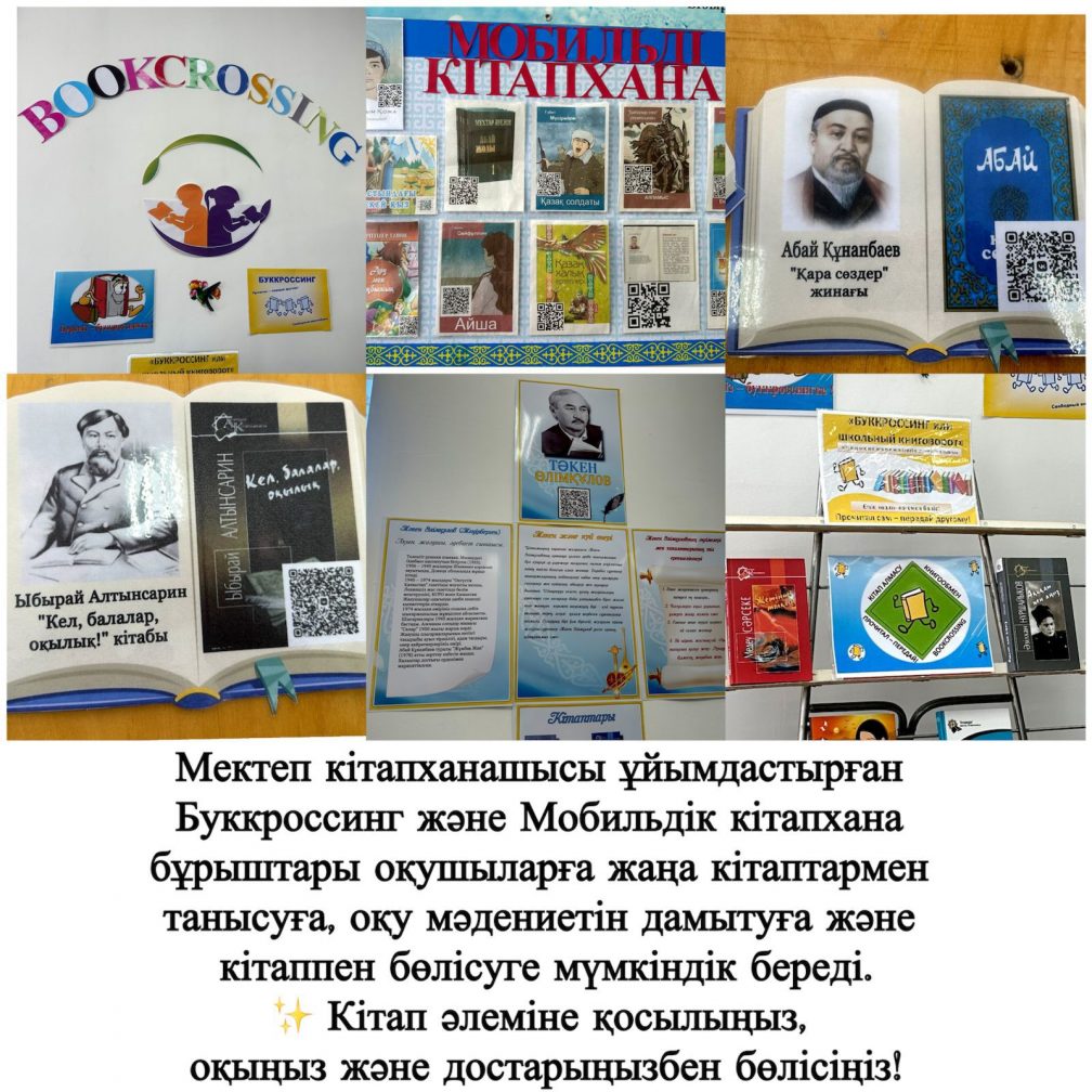 Кітапханада - буккросинг және мобильдік кітапхана бұрышы бар. Кітапханада оқырмандарға арналған буккросинг бұрышы ұйымдастырылып, кітап алмасу мәдениеті қалыптасуда. Ал мобильдік кітапхана бұрышы арқылы оқушылар кез келген уақытта қызықты әрі пайдалы кітаптарды оқи алады.